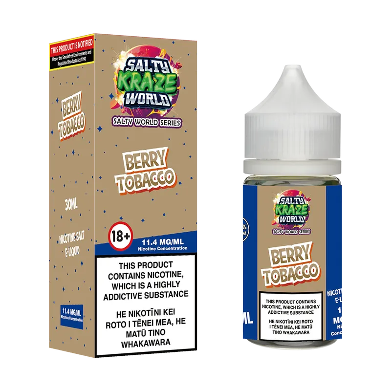Previously known as Salty Kraze World Blackcurrant Tobacco Nicotine Salt E-liquid.