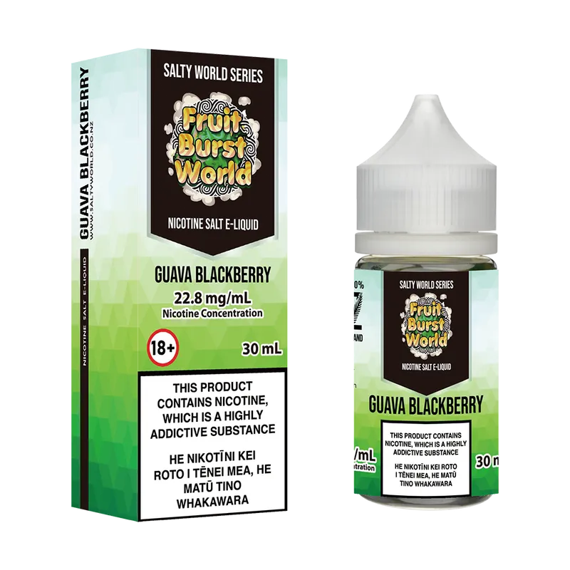 Previously known as Fruit Burst World Feijoa Black Gooseberry Nicotine Salt E-liquid.