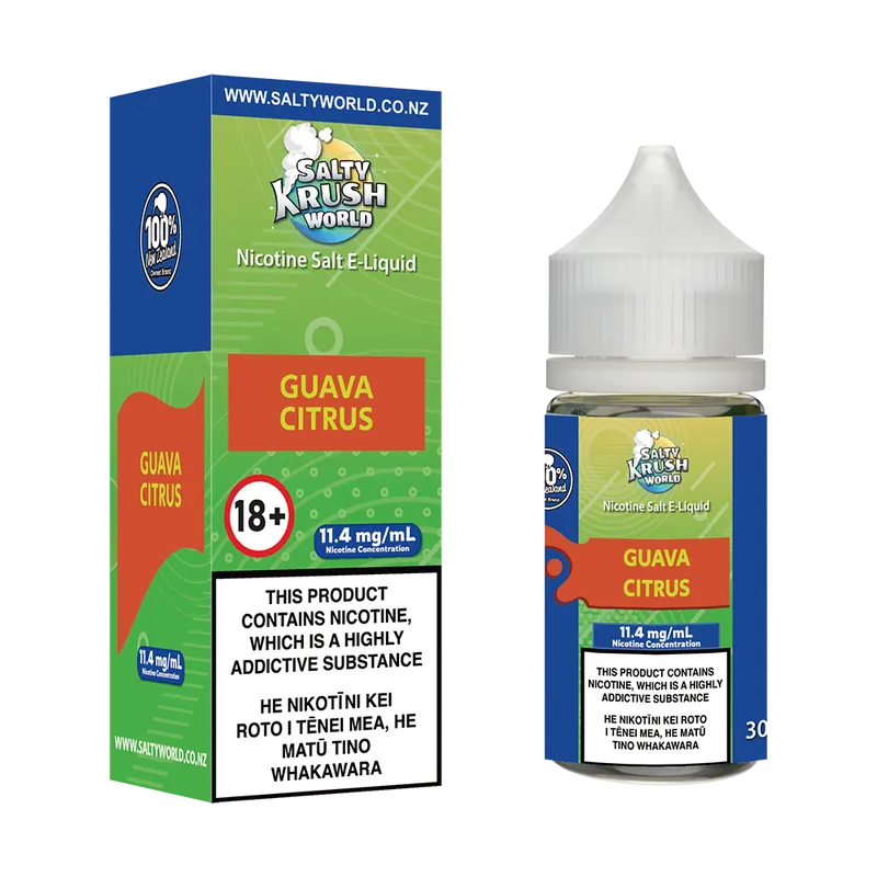 Previously known as Salty Krush World Feijoa Passionfruit Orange Nicotine Salt E-Liquid.