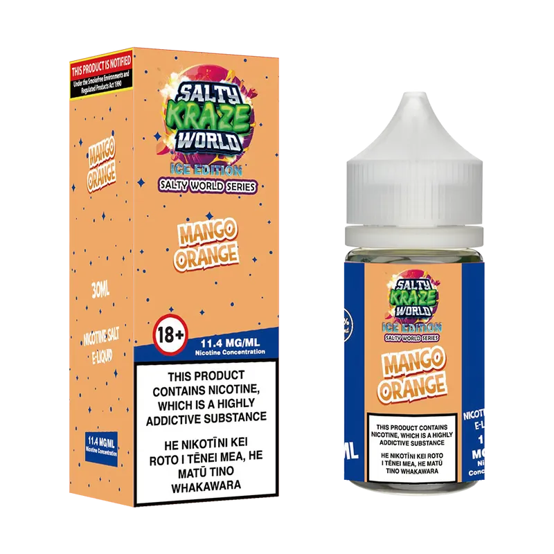Previously known as Salty Kraze World Mango Blood Orange Ice Nicotine Salt E-liquid