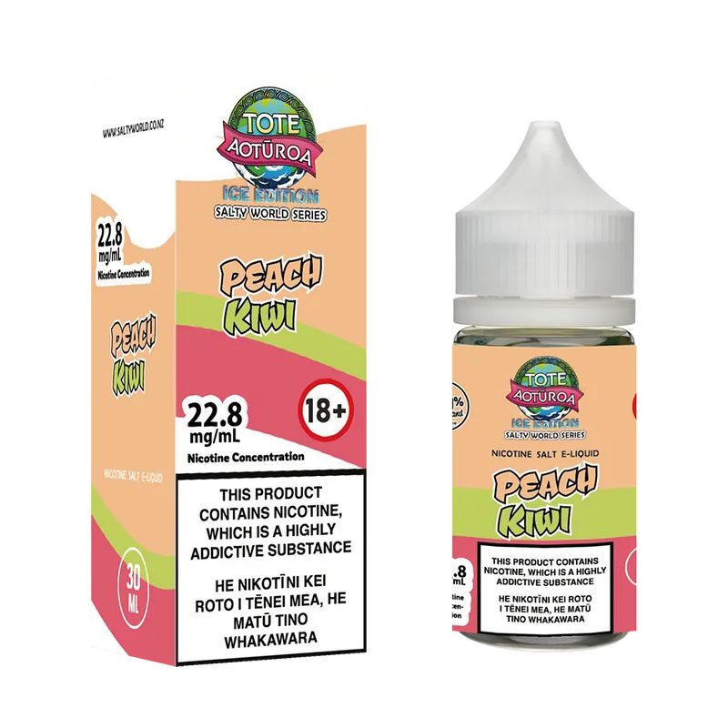 Previously known as Tote Aoturoa Peach Kiwi Soda Nicotine Salt E-liquid