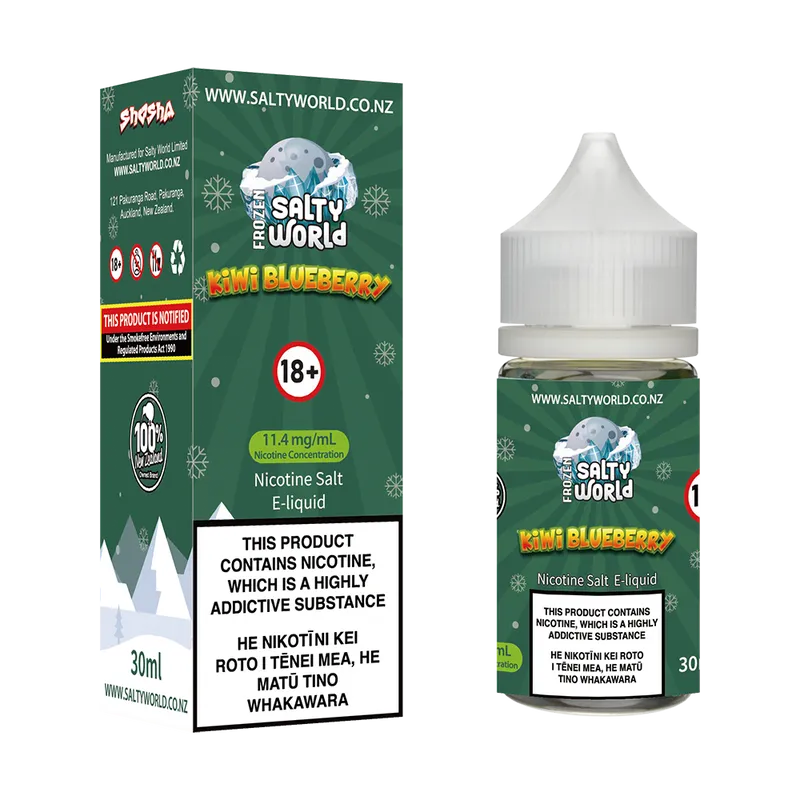 Previously known as Frozen World Kiwi Blueberry Ice Nicotine Salt E-Liquid.