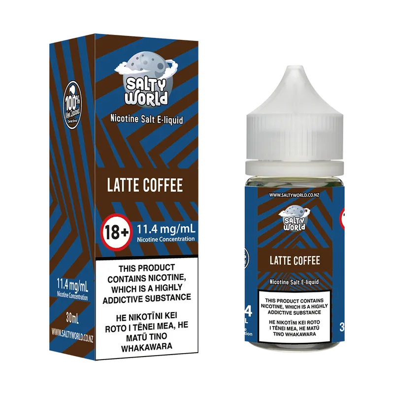 Latte Coffee Nicsalt E Liquid by Shosha Salty World kicks off your day and savours your morning with a delicious blend of raw coffee beans, milk and caramel. Each puff will leave you the true feeling that you are sipping on your favourite brew.