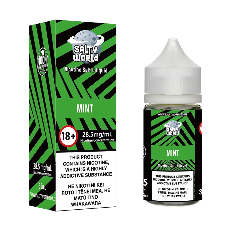 Mint Nicsalt E liquid by Shosha Salty World features genuinely refreshing essence of mint over the body whenever you take a pull. A perfect all-day-vape for ice-cold menthol lovers!
