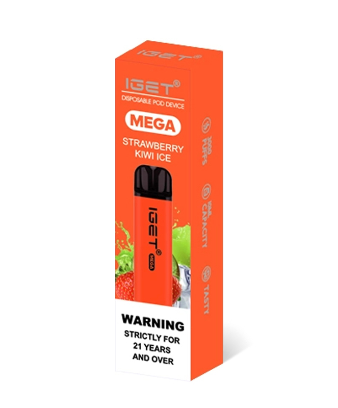 The Strawberry Kiwi Ice IGET Mega is a balanced mix of juicy, fresh strawberry and sweet kiwi flavours with an undertone of icy menthol.